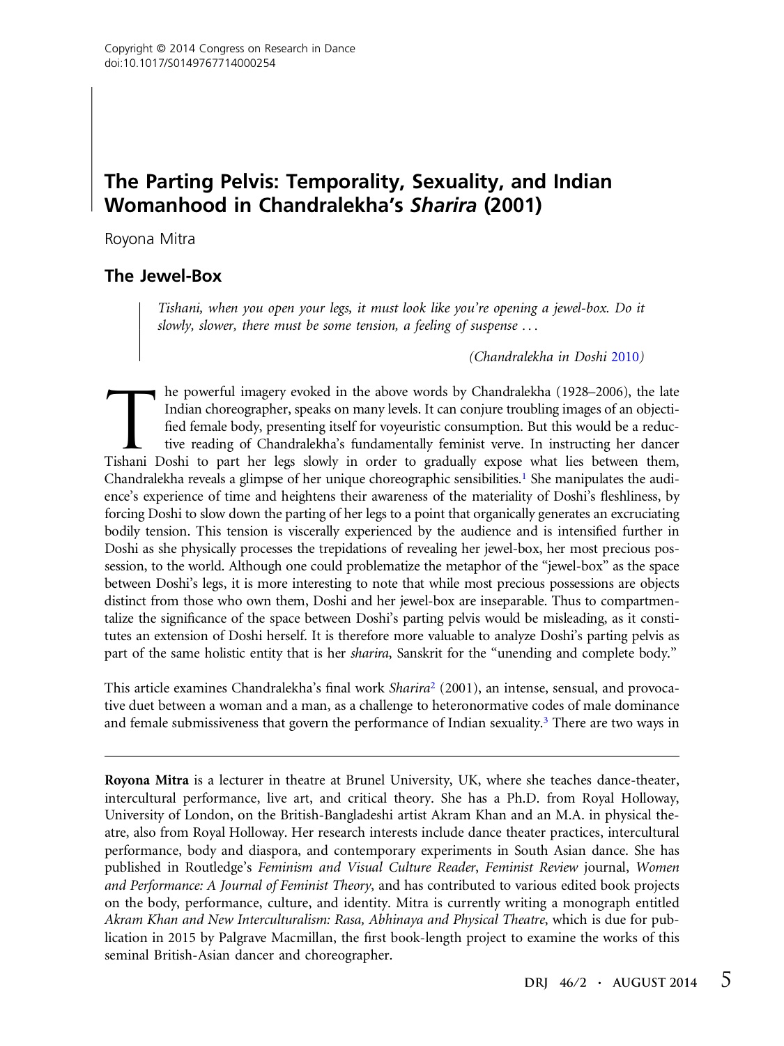 The Parting Pelvis The Parting Pelvis: Temporality, Sexuality, and Indian Womanhood in Chandralekha’s Sharira (2001)